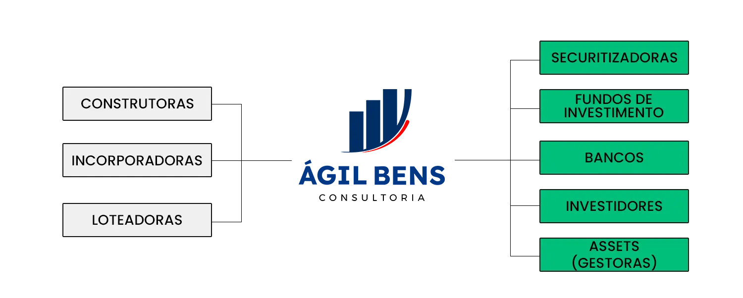 A Ágil Bens estrutura operações estratégicas para aproximar construtoras, incorporadoras e loteadoras de securitizadoras, fundos de investimento, bancos e investidores — garantindo acesso a capital com inteligência e solidez.